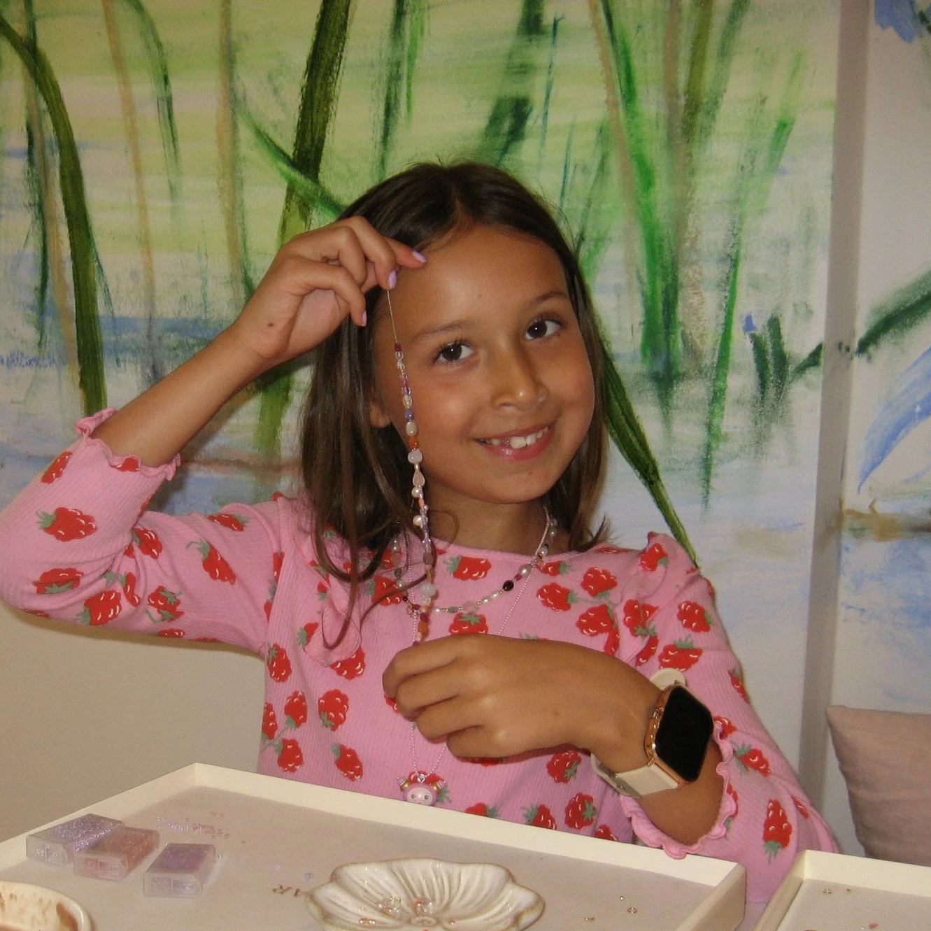Hos SMYKBAR Kids er der sørget for det hele, så børnene kan fordybe sig i at designe deres egne armbånd i et hyggeligt smykkeunivers.