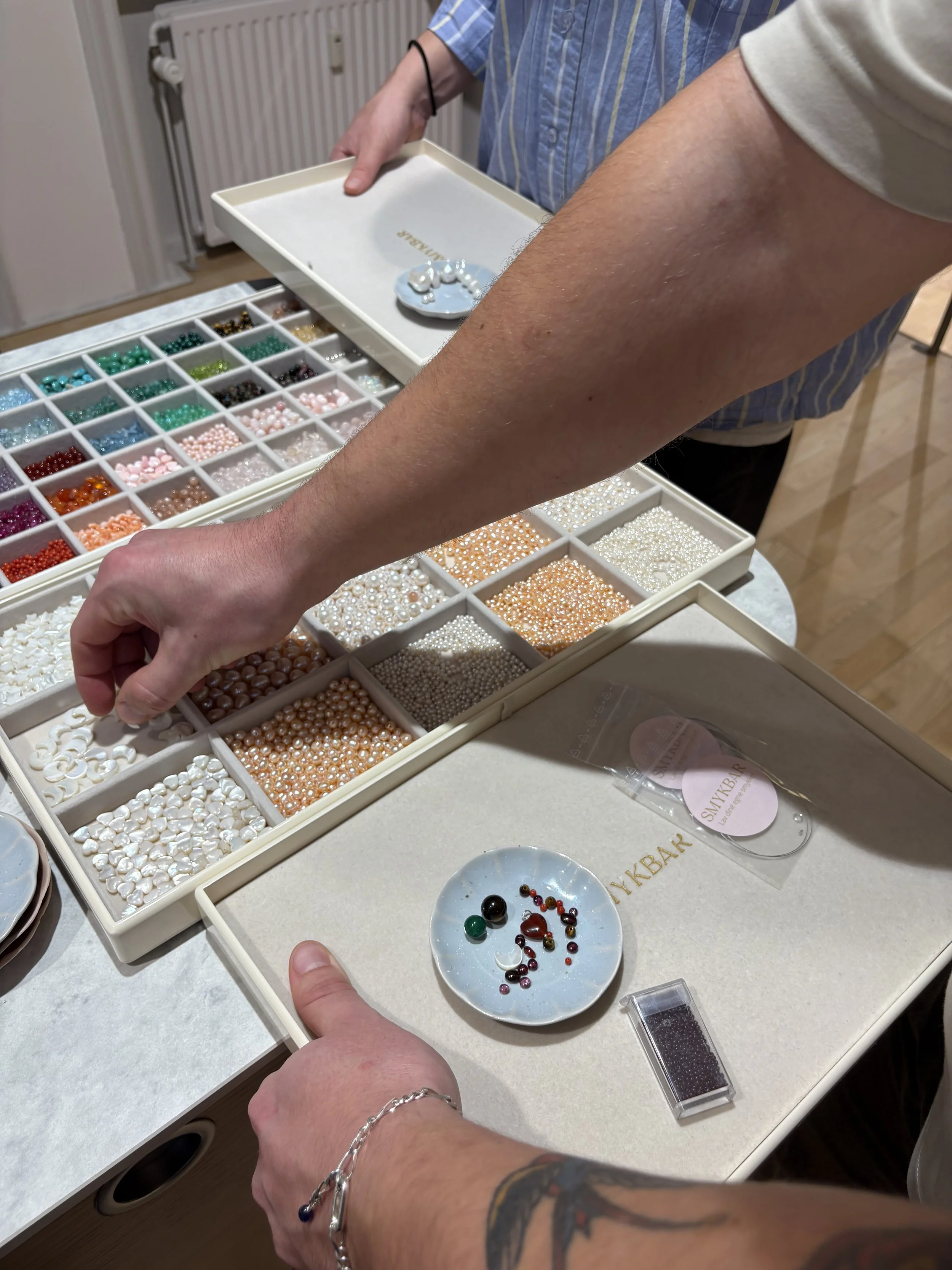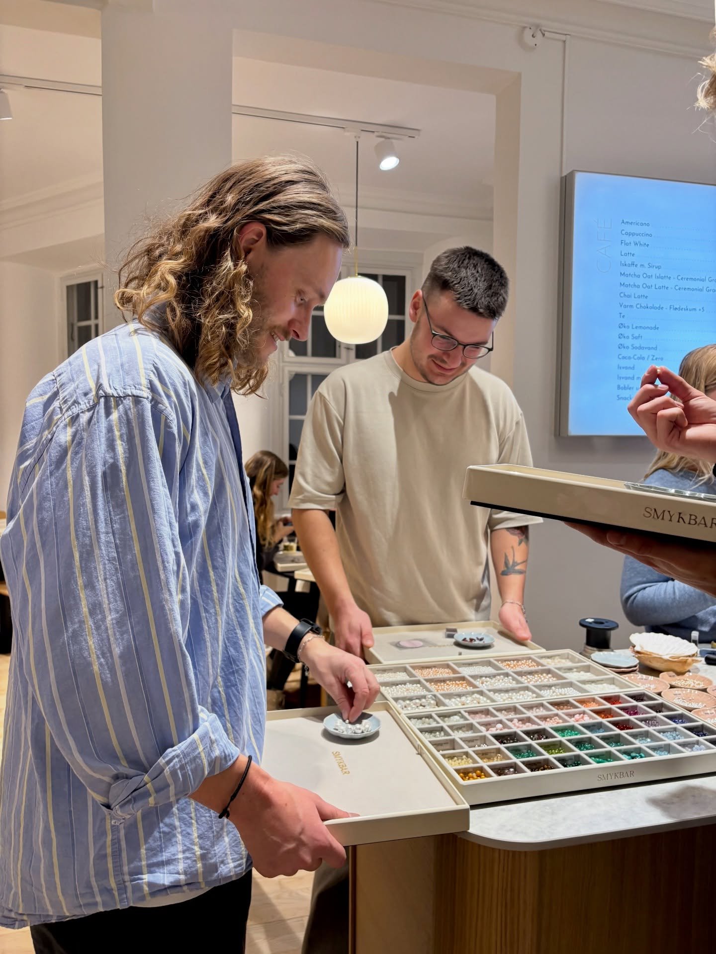 Hos SMYKBAR Copenhagen kan du designe alt fra elegante øreringe til unikke perlesmykker. Vi har masser af inspiration til at lave dine egne smykker og står klar til alle hjælpe alle - uanset om du er nybegynder eller erfaren. Vores skønne personale kan både hjælpe dig med dit design og guide dig igennem processen, så du får præcis det udtryk, du drømmer om.