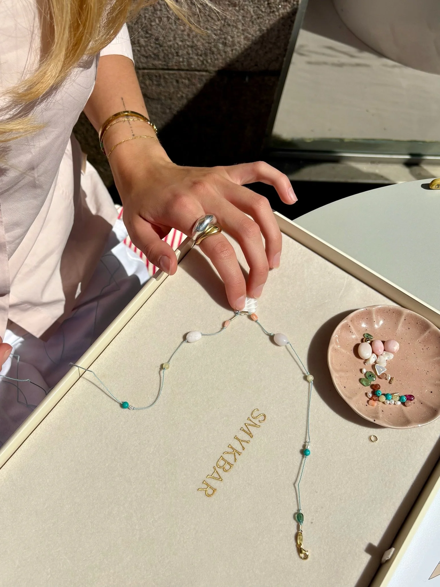 Our materials are made to be worn every day. We have developed a specially designed wire, which is used in all our jewellery. It is created to withstand daily wear and use – and that is why we also offer a 100% breakage guarantee on our jewellery. Should the unexpected happen, we will repair your piece completely free of charge.