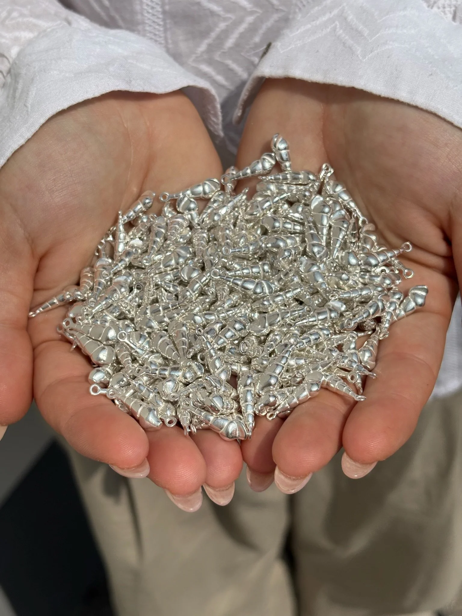 All our jewellery components, such as our own clasps, earrings, and chains, are made from solid sterling silver and are always stamped with 925, the hallmark for sterling silver – so you can wear your jewellery with complete peace of mind. Always 100% hypoallergenic.