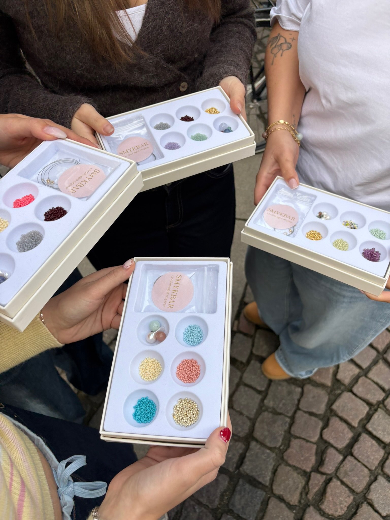 I kan også holde jeres SMYKBAR-event i egne rammer med vores nye koncept SMYKBAR Jewelry Box. Køb en Jewelry Box til hver deltager og del jeres smykkedele mellem jer. Læs mere om muligheder for arrangementer udenfor SMYKBAR.